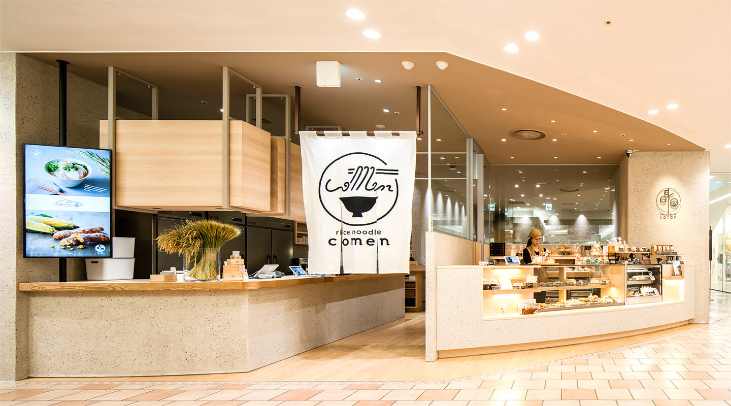 「comen」(コメン= 「米」+「麺」)。