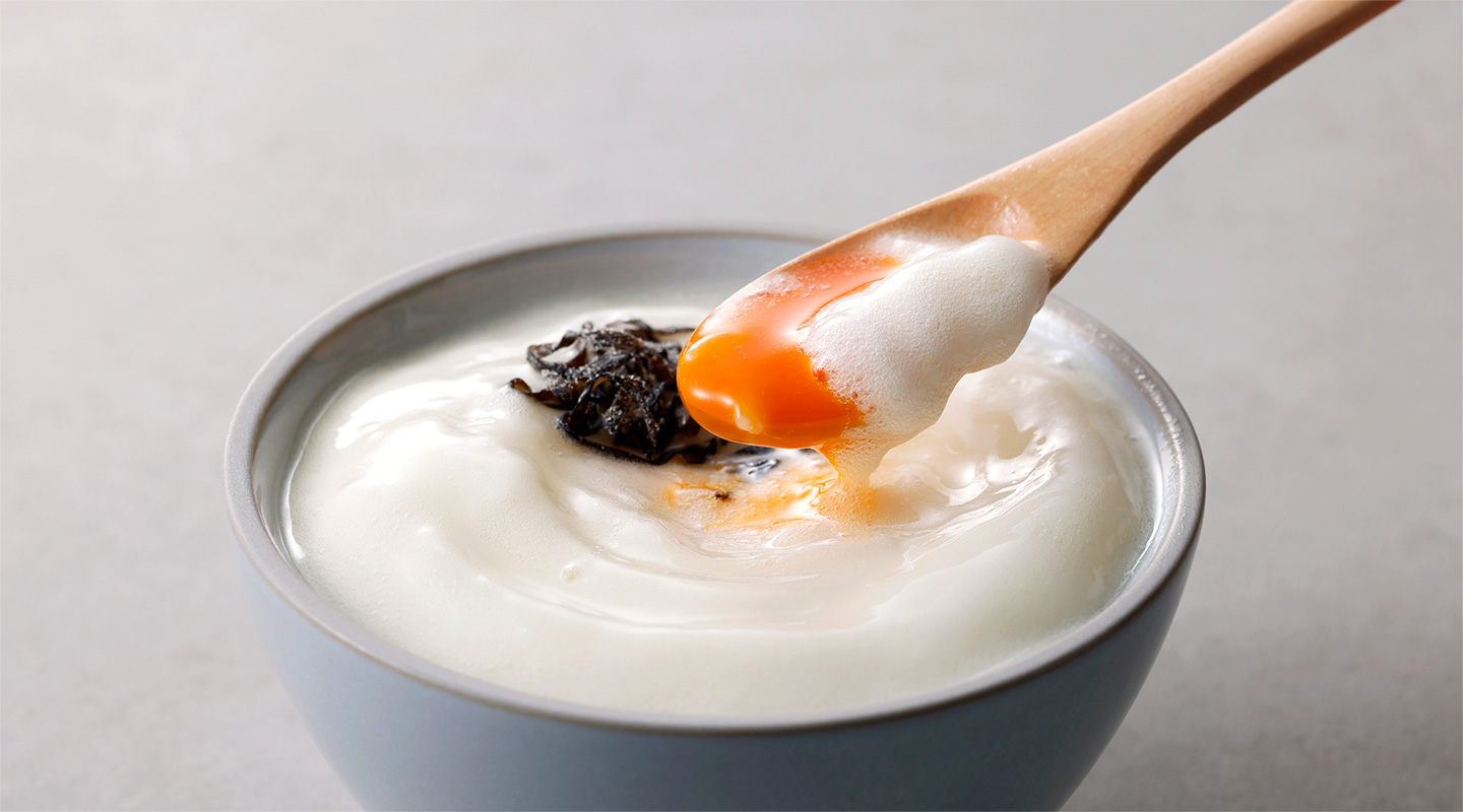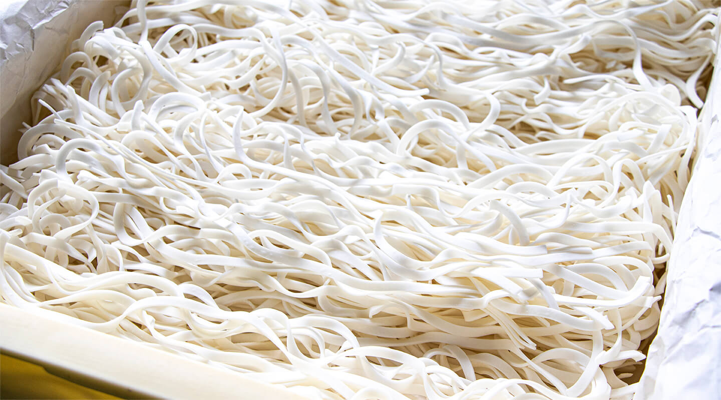 旭川の老舗製麺所、北海製麺で丁寧に作られるcomenオリジナル麺は、その日の気候や湿度に合わせた細やかな製法。「ゆめぴりか」の特徴でもある香りと粘りをそのままに、口の中で最大限に食感を楽しめるように麺の形、太さにこだわりました。茹で上がりはつやつやと輝き、口に運ぶと炊き立てのご飯の香りともっちりとした食感が広がります。