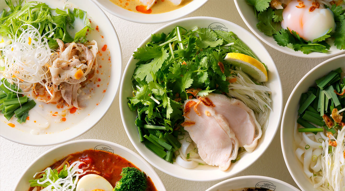 北海道産米100%の米麺を、旬の食材を取り入れたバラエティ豊かな具材やスープで味わえます。